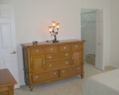 Master bedroom: • King size bed with memory foam mattress • Large closet • Side board and night stands • Access to screened porch • Access to full bathroom |