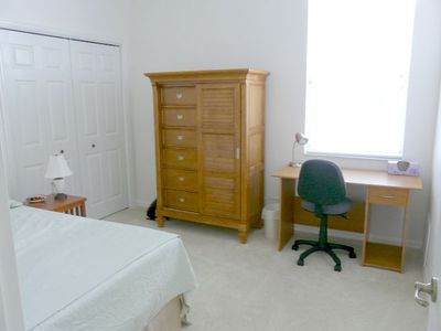 Second bedroom: • Full size bed with memory foam mattress • Closet • Side board and night stand • Small desk • Both bedrooms are separated by an owner’s cabinet, so that they are very private. |